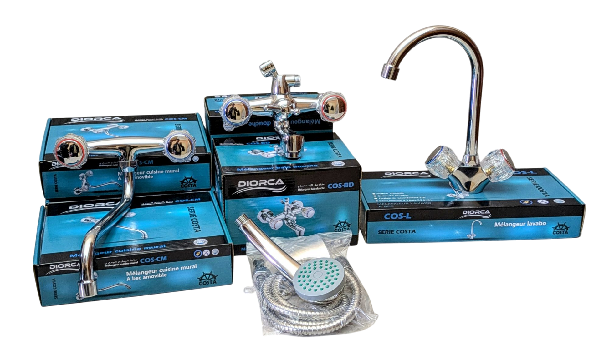 شاملة جميع الملحقات : خراطيم ، روساخ ، رأش الدوش ، و تثبيتات